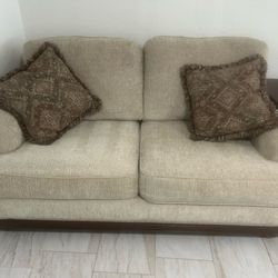 Loveseat & couch in a light beige performance fabric w/ decorative pillows - very good condition!$300Safety Harbor, FL