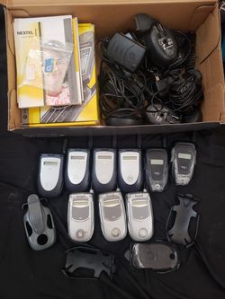 9 Motorla Nextel flip phones, charging cords, carry clips, sin cards more$200North Palm Beach, FL