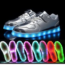 BRAND NEW IN BOX Wooowyet Kids Size 29 or 11.5 LED Sneakers for Boys & Girls Hook&Loop Low Light Up Shoes LED USB Recharging $25Palm Beach Gardens, FL