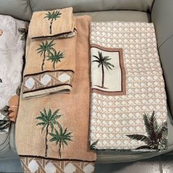 4 Piece Bath Set, Shower Curtin , Bath, Hand and Washcloth Towel. Excellent Condition. $15Port St. Lucie, FL