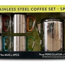 STAINLESS STEEL COFFEE PERCOLATOR AND MUGS SET$39Palm Beach Gardens, FL