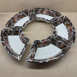 FAMILLE ROSE 6 PIECE LAZY SUSAN 15 1/4" WIDE COBALT BLUE & RUST ORANGE $20Vlg Wellingtn, FL