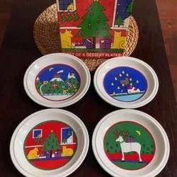 Set of Four Houze Christmas Dessert Plates Staffordshire England 1985 just $15 For All $15Port St. Lucie, FL