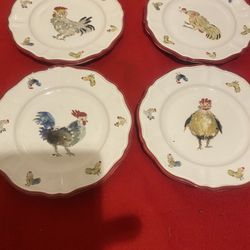 Jacques Pepin Sur La Table Watercolor Art Chicken Appetizer 7 1/4 “ 4 Plates! One Has A Small Chip$20Palm Beach Gardens, FL