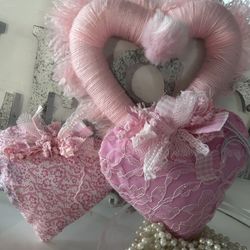 Beautiful Pink, Purple, Blue And White Yarn Hearts With Messy Bow$10Palm Beach Gardens, FL