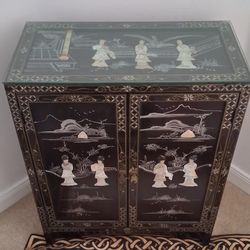 Black Wooden Cabinet With Lacquer Finish, Mother Of Pearl Inlay, Asian Chinese Motif$350Port St. Lucie, FL
