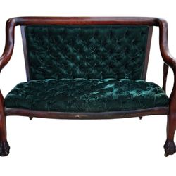 Green Velvet Button Tufted Claw Feet Wheeled Antique Mahogany Sofa $1,900Port St. Lucie, FL