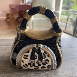 Vintage Ceramic DAVID'S COOKIE Black Purse Leopard Cookie Jar$15Vlg Wellingtn, FL