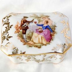 F.M Limoges France Porcelain Artistique Rare White Rectangular Box Courting Couple $35Juno Beach, FL