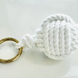 Nautical Monkey-Fist Knot Keychain, White Cotton Rope with Rustic Brass Ring$8Indn Riv Shrs, FL