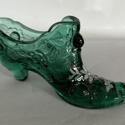 Fenton Art Glass Green Hand Painted Flowers & Signed Cabbage Rose Slipper Shoe 6” New$22Port St. Lucie, FL