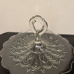 Vintage Crystal "Feather" Pattern Tidbit Serving Tray with Keyhole Center Handle by Jeannette Glass$20Jupiter, FL