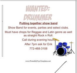 We are putting a band together, and we are looking for a drummer.$1,003Port St. Lucie, FL