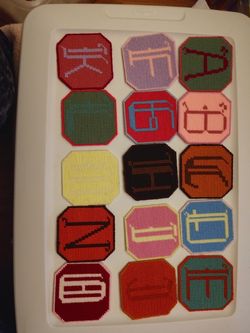 Hand sewn embroidered linen ornaments (5)$25Palm Beach Gardens, FL