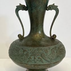 Japanese Bronze Vase Takaoka Phoenix Motif Dragon Handles Flower Vessel 11”$75Jupiter, FL