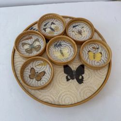 Vintage '70s Retro Pressed Butterfly Bamboo Coasters W/ Serving Tray$60Jupiter, FL