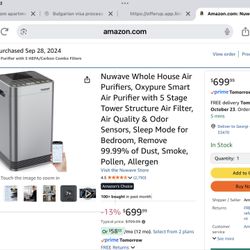 Nuwave Whole House Air Purifiers, Oxypure Smart Air Purifier with 5 Stage Tower Structure Air Filter, Air Quality & Odor Sensors, Sleep Mode for Bedro$250Vlg Wellingtn, FL