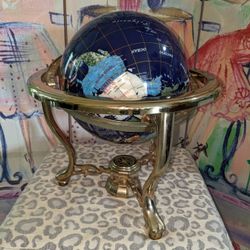 14" Blue Ocean Lapis Gold 3- Leg Stand Gemstone World Map Globe Compass$60Port St. Lucie, FL