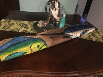Hand painted mahi-mahi and marlin on a piece of reclaimed wood.$225North Palm Beach, FL