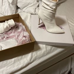 Woman Size 11, White Platform Boots, withChunky Heel, Square Toe and Side Zipper Design$22Jupiter, FL