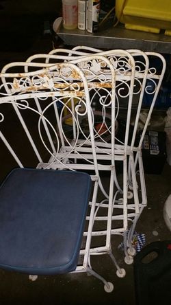 Wrought iron chairs cushions table$250Port St. Lucie, FL