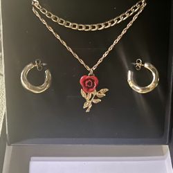 Beautiful gold plated 17” chain double necklace and earrings with a rose pendant - New in box$20Palm Beach Gardens, FL