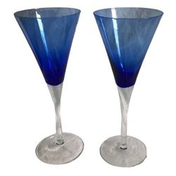 2 Vintage Blue Cobalt Flute Glasses 25 Rare!$20Jupiter, FL