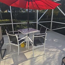 4 Outdoor Chairs, Red Umbrella With Stand$45Jupiter Inlet, FL