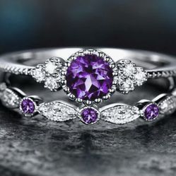2 PC Stacked Created Amethyst Purple Wedding Rings *Sizes 6/7/9/10*$20North Palm Beach, FL