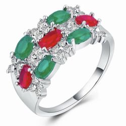 *SALE*Beautiful Created Sapphire Emerald Ruby Holiday Ring Stamped 925 Size 7 *See My Other 500 Items*$15Jupiter, FL