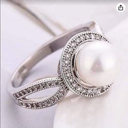 Women Pearl And Sapphire 925 Sterling Silver Ring New Size 6-10$35Port St. Lucie, FL