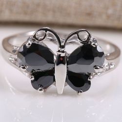 Natural Gemstone Black Sapphire Butterfly Sterling Silver Ring