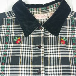 Women's Lg Holly Embroidered Holiday Button Up Plaid Shirt Velour Collar Winter$19Ocean Brz Pk, FL
