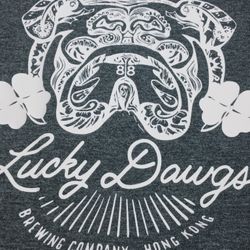 Lucky Dawgs Brewing Company t shirt Craft Brewer Hong Kong Dark Gray Med Beer $22Ocean Brz Pk, FL