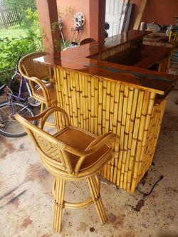 Bamboo bar with wheels and bamboo bar stools asking 950$950Port St. Lucie, FL