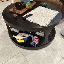 Round Black Textured Coffee Table On Casters$200Port St. Lucie, FL