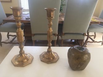 Brass candlesticks and solid brass apple paper weight$20Palm Beach Gardens, FL
