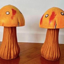 Lot of 2 Large 14” tall Mushroom Garden Object Statue handcrafted pottery In great condition About 7 pounds in weight each Great decor for garden or$140Jupiter Island, Florida