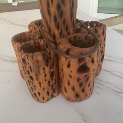 Handcrafted wooden 7 barrel cholla candle center piece table decor with metal handle In excellent condition Made by a local Floridian artist Approx $95Jupiter Island, Florida