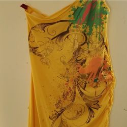 Yellow Stapless Satin Formal Dress With Shall$35Port St. Lucie, FL