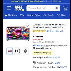 LG - 86" Class UA77 Series LED Al 4K UHD Smart webOS TV..$480Miami, FL