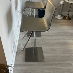 Like New Set Of 2 Brown Leather Adjustable Height Stools Brushed Chrome Base$275Hialeah, FL