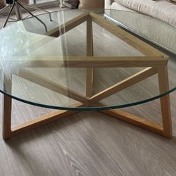 CB2 original geometric wood frame & glass coffee table$550Hallandale Beach, Florida
