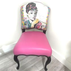 Hot pink leather chair depicting the image of iconic actress AUDREY HEPBURN$40Miami, FL