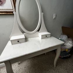 Elegant White Vanity Table with Oval Mirror & Storage – $150$150Miami, FL