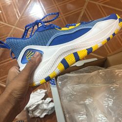 Under Armour Curry 3Z4 Blue White Yellow Striped Low Top Basketball Sneakers 10M$70Fort Lauderdale, FL