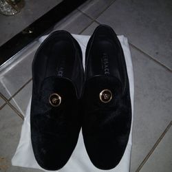 This is a pair of Versace Medusa velvet slippers in black with a gold-tone Medusa emblem. Size 8.5$300Miami Beach, FL