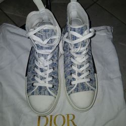 This is a pair of Dior B23 high-top sneakers in blue oblique jacquard canvas. Size 8.5$250Miami Beach, FL