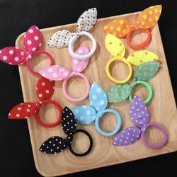 10pcs Kids Girls Polka Dot Heart Star Rabbit Ear Hair Tie Stretch Rubber Bands Hair Rope Hair Bands Hair Accessories Children's Gift$7Medley, FL