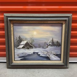 “Snowy Cabin Scene” by Mary Lou Payton – Original Framed Painting$60Hialeah, FL